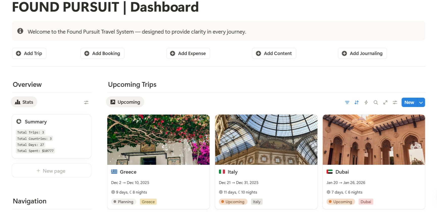 Found Pursuit is a design-led travel brand built around clarity, intention, and movement. We believe travel should feel considered — not chaotic. Planned — but never rigid.